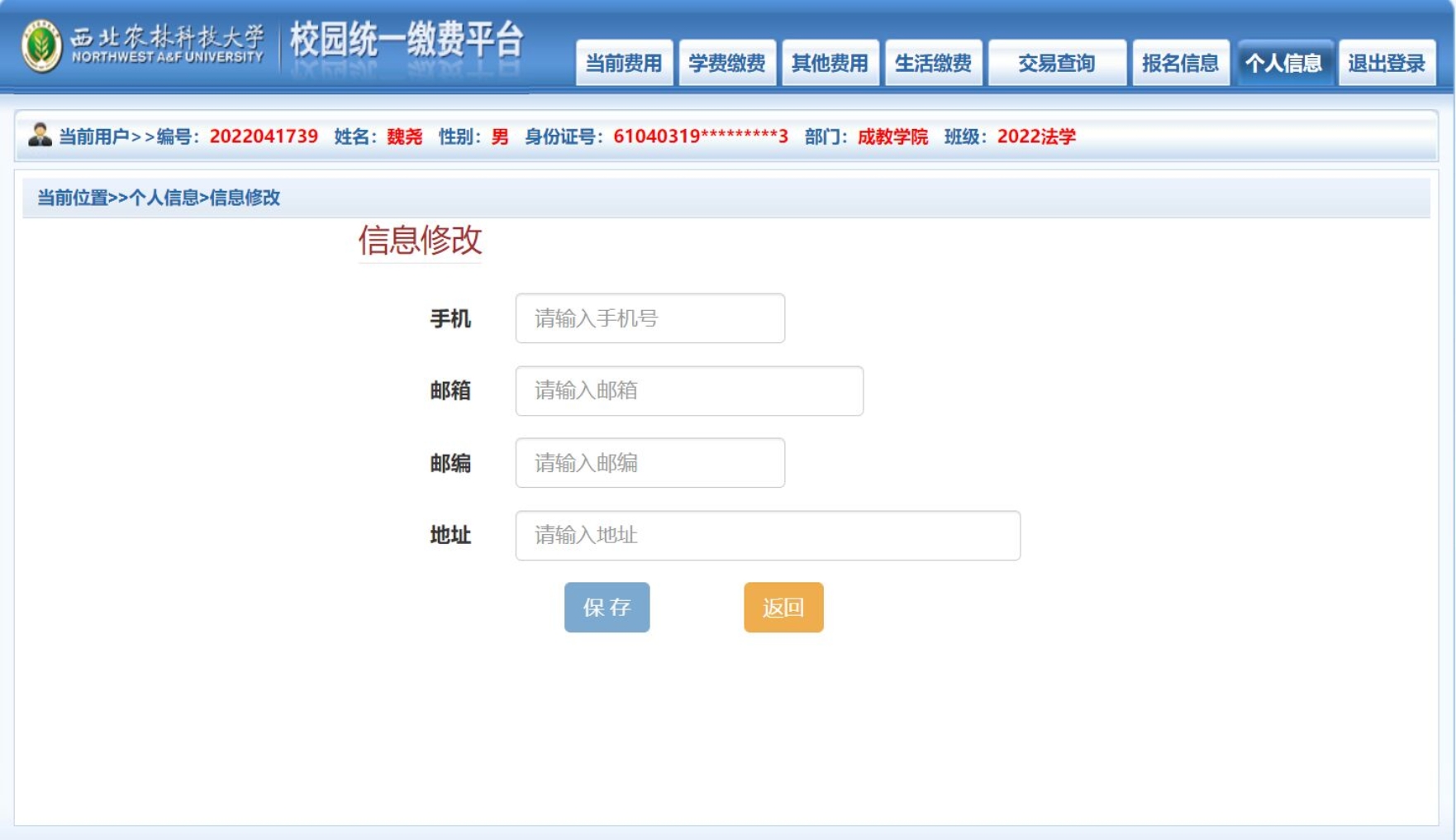 缴费地址:http://tyjfzfpt.nwsuaf.edu.cn