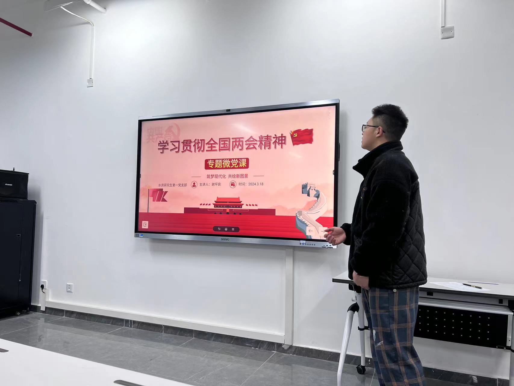 为深入学习贯彻全国两会精神,推动两会精神在基层党支部落地见效,近日,水资研究生第一党支部在学院B520会议室顺利开展“学习贯彻两会精神,争做新时代新青年”主题微党课,支部全体党员和部分共青团员参加,大会由党支部副书记谢坪良主持。