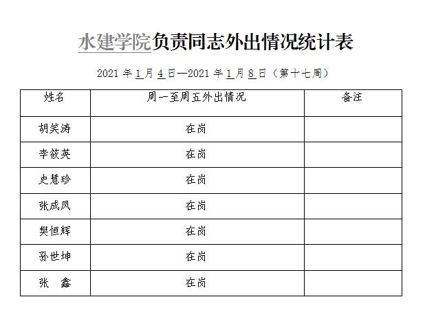 » 水建学院负责同志外出情况统计表(第十七周)