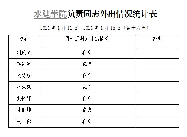 » 水建学院负责同志外出情况统计表(第十八周)
