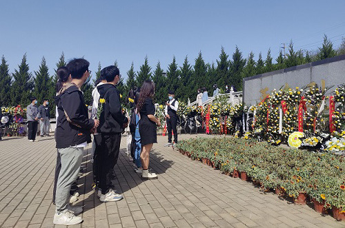 青山默默,松涛阵阵。今天,我们以革命的名义,追忆那为国献身的铮铮烈骨:以现代化建立飞速开展的现实来告慰英魂。作为中国新时代青年,除了要具备丰富的科学文化知识,还要有良好的道德品质,要铭记习近平总书记的谆谆教诲,立大志,明大德,成大才,担大任,努力成为新时代中国的志气、骨气及底气。