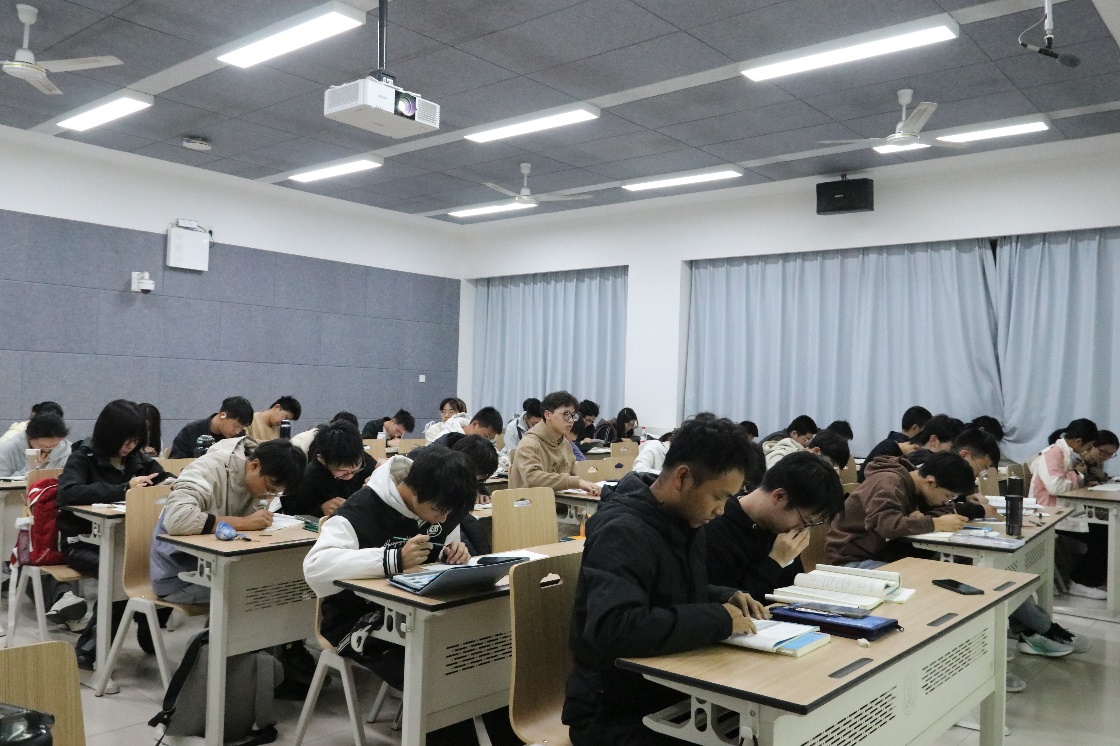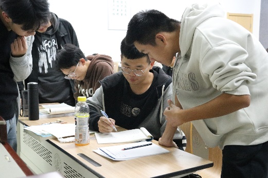 答疑晚会于晚上 19:30 开始,同学们早早到场,吴明玉老师耐心教导,为同学们答疑解惑。同时,学工坊工作人员维持会场秩序,协助答疑活动的进行。晚会期间,同学们或积极向老师提问,或围坐讨论,亦或在角落独立思考。晚会结束后,众多同学仍围绕在吴明玉老师身边,持续探讨问题,久久不愿离去。