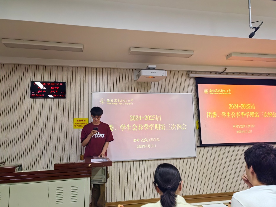 2025年4月10日,水利与建筑工程学院成功举办团委学生会春季学期第三次例会。此次会议旨在进一步加强学院团委学生会各部门之间的沟通与协作,优化工作流程,提升工作效率,推动学院学生工作迈向新台阶。