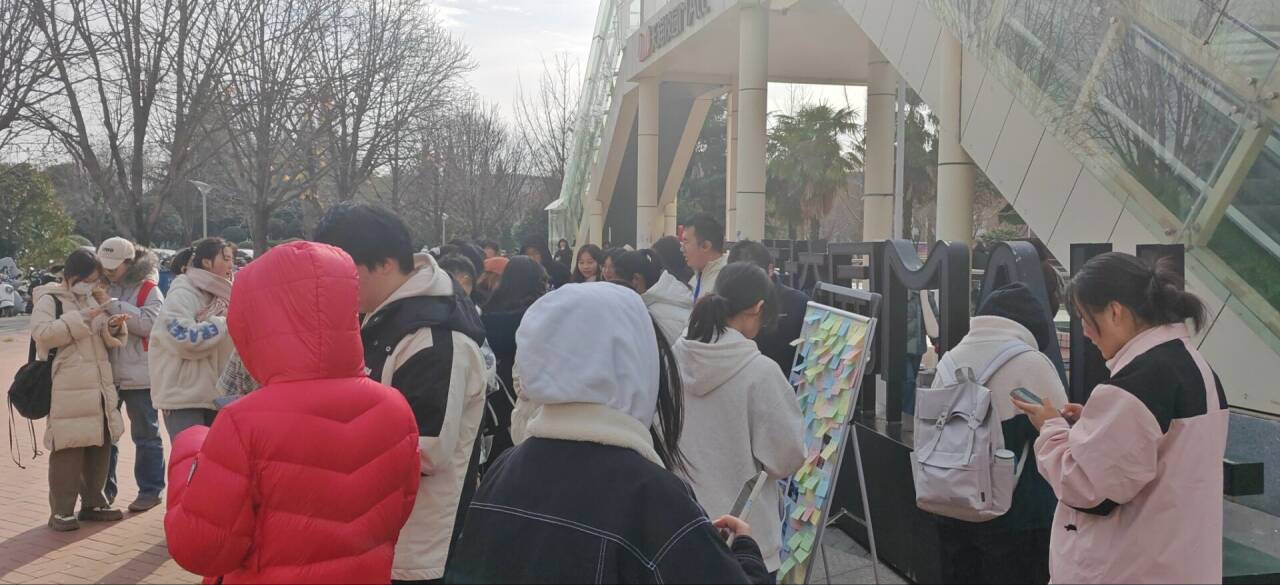12月8日,本次活动于北校区西雕广场正式举行。活动共有两种参与方式:【一】家乡特色照片收集:同学们提前准备5寸大小的照片,并在指定时间内到达西雕广场交给工作人员,由工作人员进行张贴展览。【二】书写对家乡的寄语:同学们把自己对家乡的美好寄语写在工作人员事先准备好的便利贴上,并粘贴到展览板上。