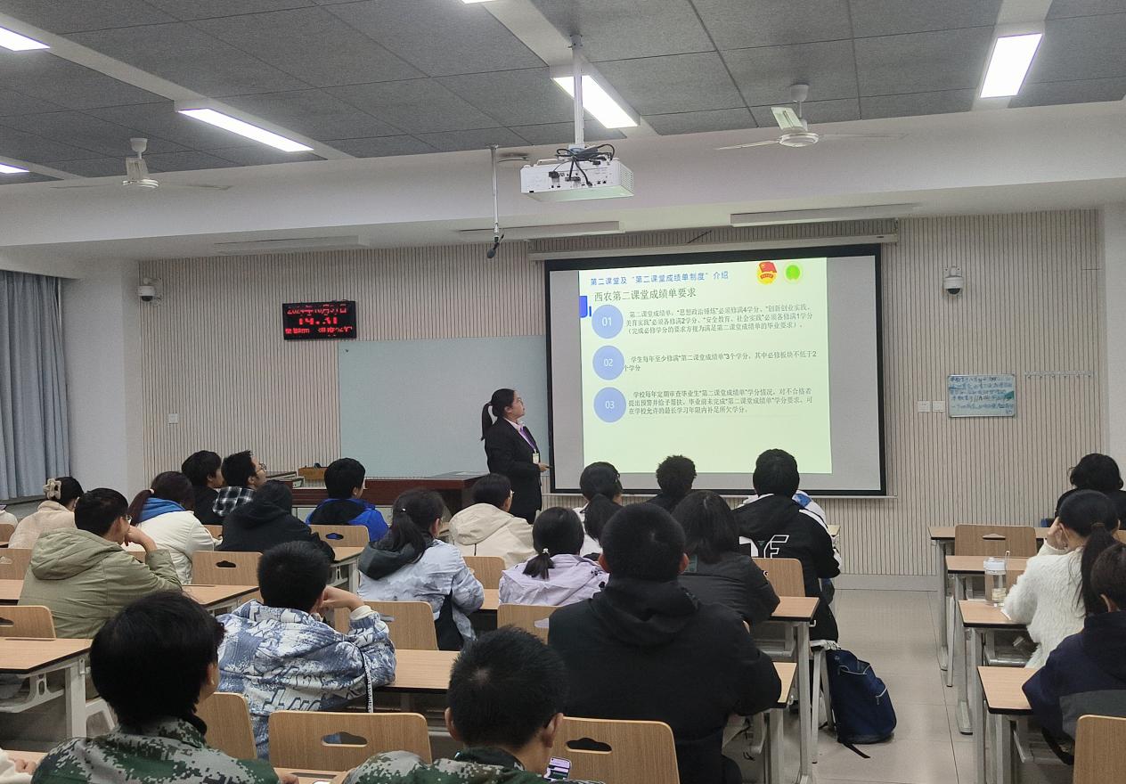 张喆老师针对第二课堂进行了系统讲解,这不仅能够让24级的同学们全面了解我校的第二课堂,还大大提高了同学们参与进来的积极性,进而为同学们提升自身综合素质,奔赴光明未来铺路架桥。
