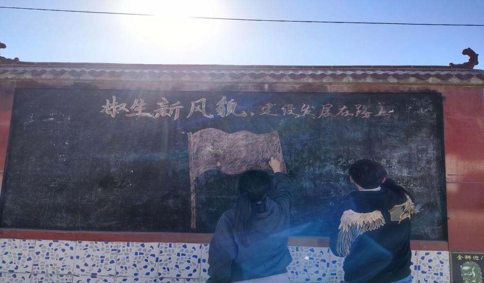 12月19日,陕西省杨凌区椒生村的三位村主任助理受村主任邀请,前去村里绘办黑板报。会展宏图次次新,满枝苞蕾又迎春。茹超、杨文宇、滑思涵三位同学关于黑板报的主题展开了仔细的探讨,最终确定了“学党史、迎新年,共建椒生新风貌”为主题。当村主任问及准备工作时,杨文宇同学动情的说道:“我们决定以党建党史为主,椒生村环境发展为辅来绘办此次的黑板报。在基层党组织的领导下,椒生村旧貌换新颜,环境发展得到了极大地提高,我们相信在新的一年里,基层党组织领导下的椒生村将会焕发出新的活力与生机!”