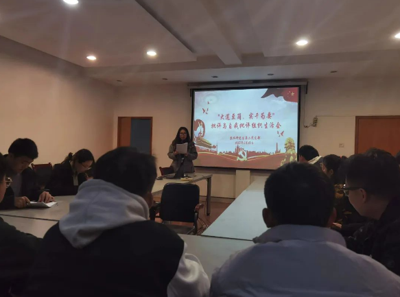 践行初心,就不会迷失方向,就会有明确的价值指向;担当使命,就不会精神懈怠,就会有强大的奋斗动力。支部党员结合当下社会热点和实事政治解读党的二十大精神,从背景、内涵、要求、意义四个方面详细阐述了为中国人民谋幸福、为中华民族谋复兴这一初心和使命的重要性,再一次强调了大学生党员理应承担的历史使命和时代责任。支部党员纷纷表示,大学生党员要始终践行初心,牢记使命,为实现人民对美好生活的向往、实现中华民族伟大复兴而不懈奋斗。
