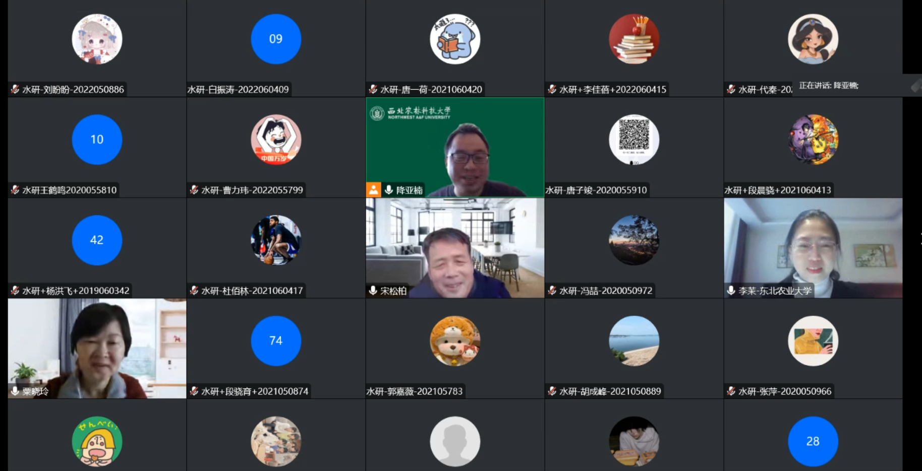 在交流互动环节,我院10余名参会师生积极参与交流发言。李茉教授进一步对水土资源优化配置研究中不确定性分析方法的选择、多目标协调度的确定、水资源优化配置与SWAT模型的耦合、灌区种植结构优化、作物模型的精细化模拟和评价的时空尺度等问题进行详细解答。此次学术交流会使我院师生对不确定条件下的农业水土资源优化配置方面的理论及应用有了更深层次的了解,线上讨论气氛热烈,学术氛围浓厚,取得了良好的学术交流效果。