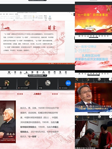 党支部多次开展优秀党员事迹分享活动。组织学生党员搜集整理大量优秀党员事迹材料,并以PPT展示、诗歌朗诵、故事情景再现等多样形式进行展示学习,引导学生感悟榜样崇高风范。邀请学生优秀共产党员开展朋辈对话,激励支部党员见贤思齐。支部党员以功勋党员先进事迹,洗礼思想、净化心灵,对标优秀共产党员,剖析自我、明确目标、向上向好。