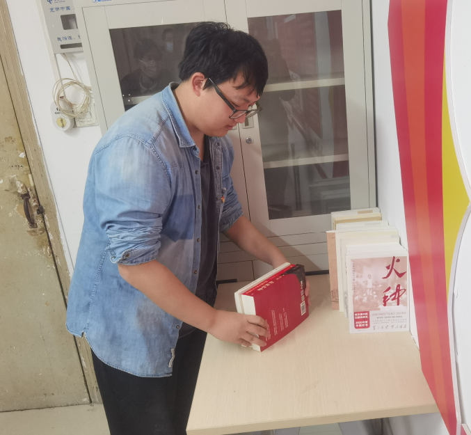学生党员整理党员活动室资料