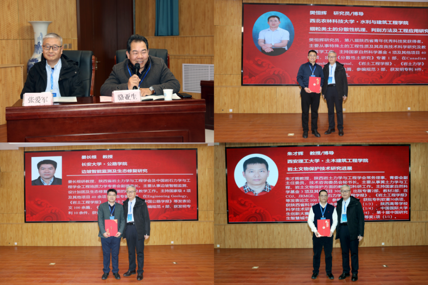 第三阶段为大会主旨特邀报告,由水建学院张爱军教授和骆亚生教授主持。我校樊恒辉研究员、长安大学晏长根教授和西安理工大学朱才辉教授分别做了题为“细粒土的分散机理、判别方法及工程应用”、“胶-筋固化黄土护坡材料研发及工程应用”、“岩土文物保护技术研究进展”的学术报告,从西部特殊岩土工程的不同领域方向进行了交流汇报,引起与会代表中充分肯定和积极反响。